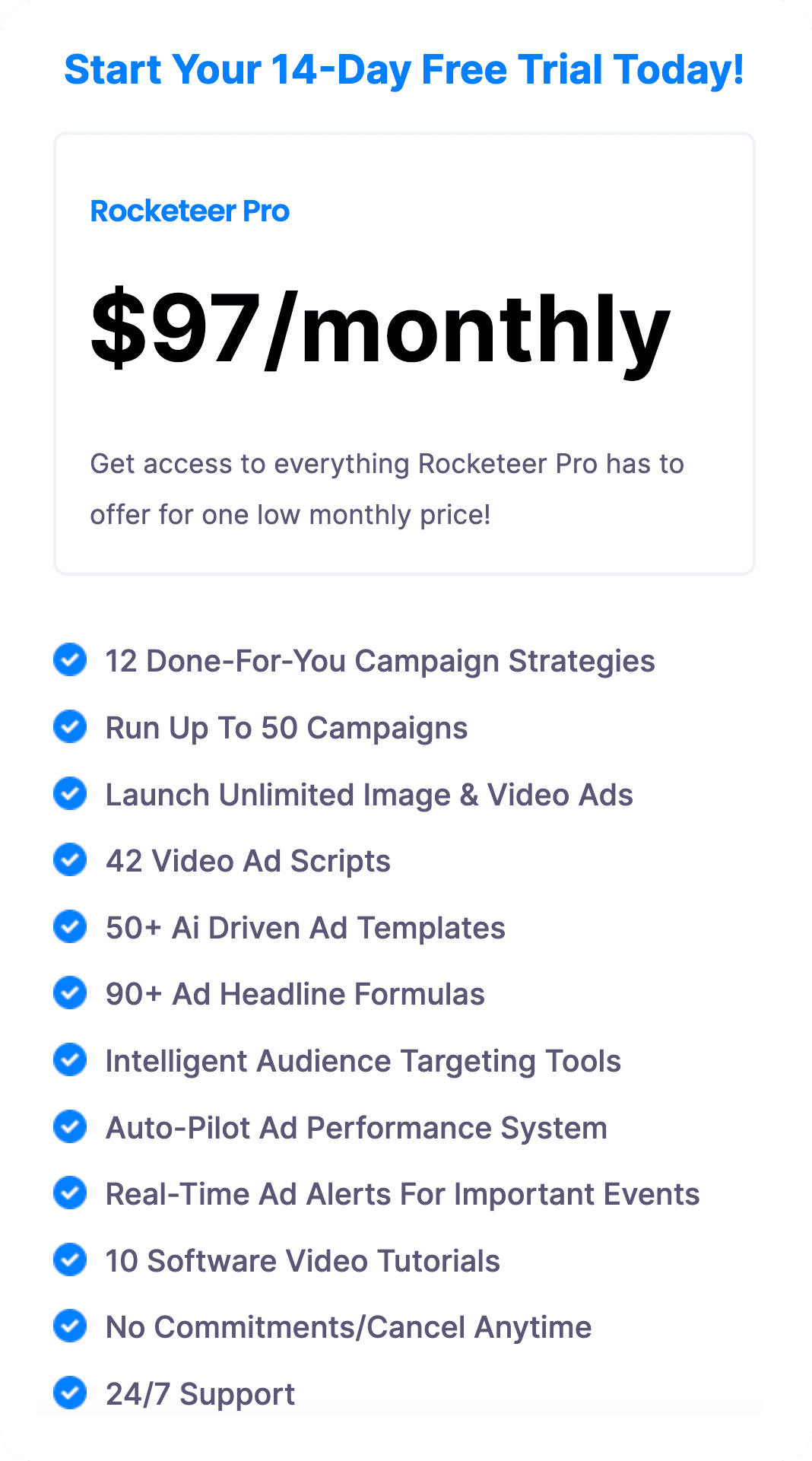 Yes! Inside Rocketeer you will get access to multiple training videos showing you exactly how to successfully create, launch, and manage your ad campaigns. These videos will walk you through, step-by-step, what to do in order to accomplish your goals.